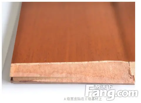 因为树木结疤、虫蛀等原因,外表木纹不行漂亮,不少杂牌加工厂会将更漂亮的A级面皮贴在C级基材上,或电脑转印成其它木种纹路,掩盖板面的缺点,到达以次充好的意图。因为基材原料差,漆面涂覆工序少,装置1-2年后,脱色和变形现象严峻。
